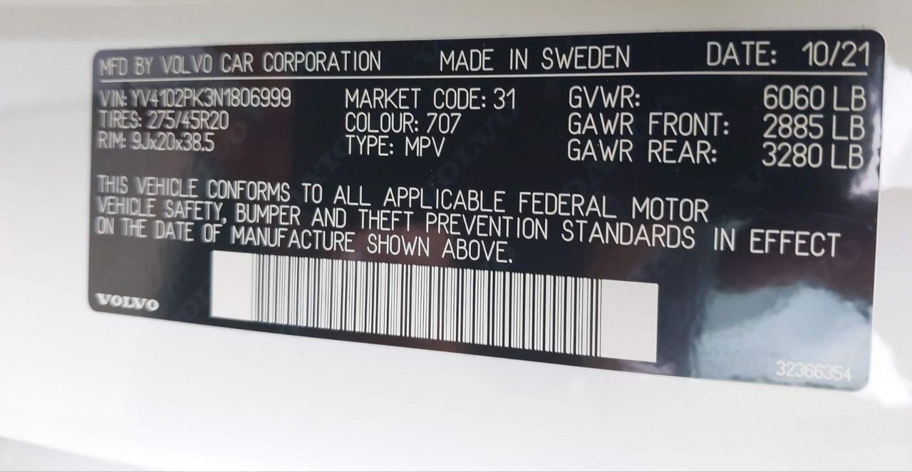 2022 Volvo XC60 – VIN: YV4102PK3N1806999 – IAAI Auction WI