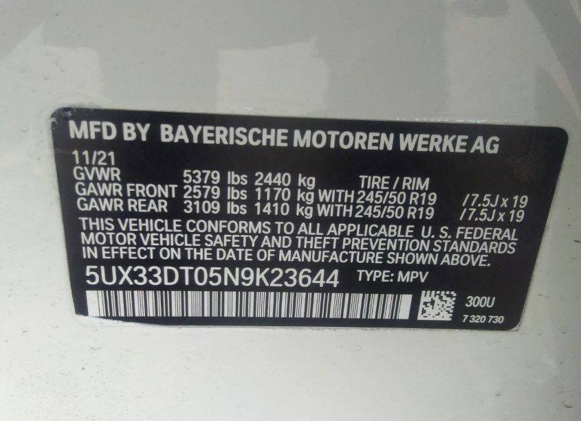 Vin: 5UX33DT05N9K23644