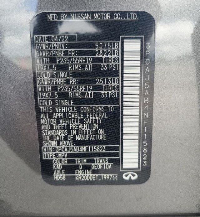 The clean condition and extremely low mileage make VIN 3PCAJ5AB4NF115823 an outstanding value in the luxury compact SUV segment.