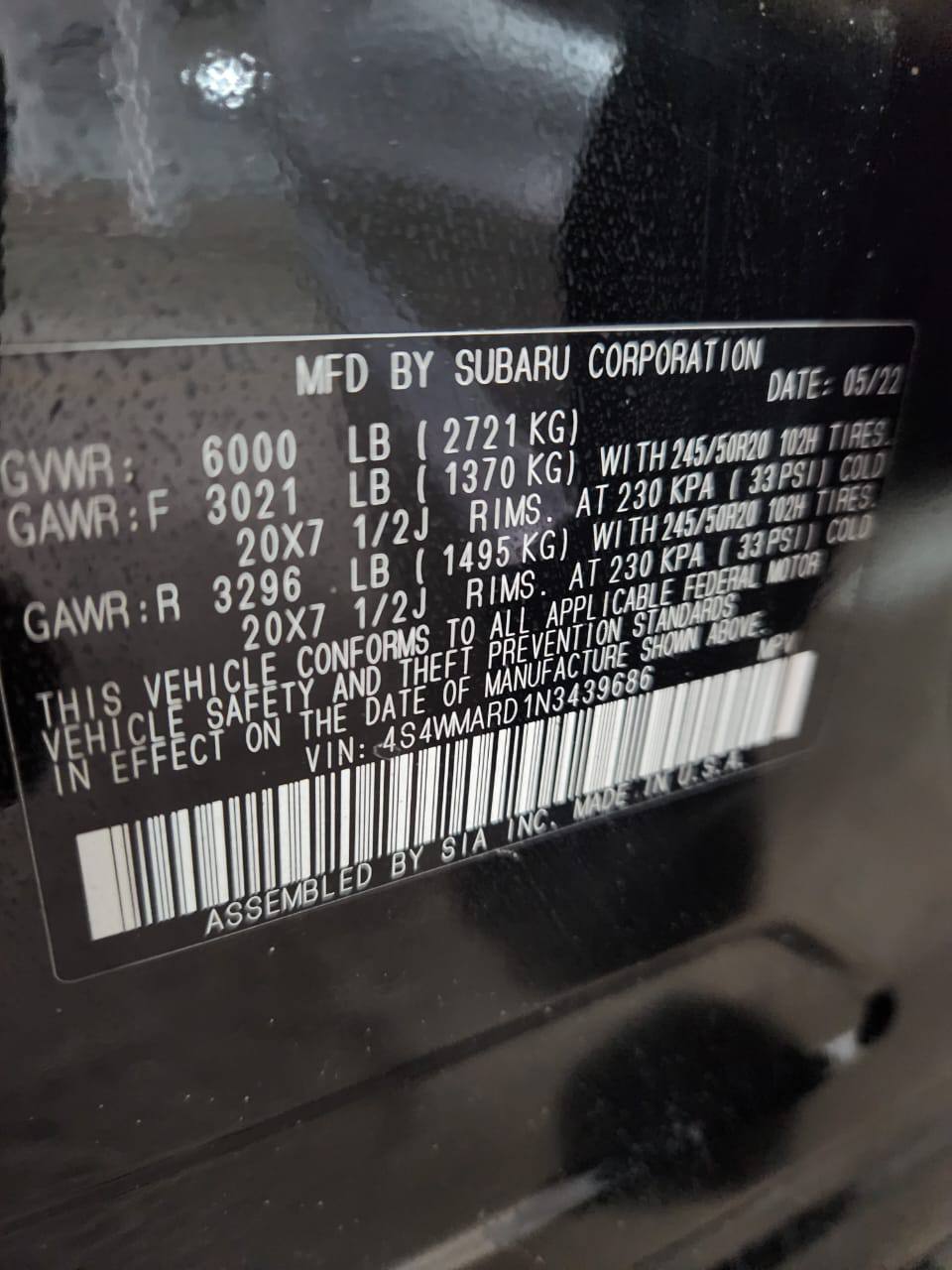 • VIN Lookup: 4S4WMARD1N3439686